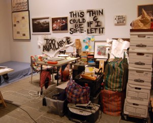 November 10 — On my way home from the post office I decided to stop in at the Museum of Modern Art to check out the exhibition devoted to JAM (Just Above Midtown), the peripatetic gallery founded by Linda Goode Bryant in midtown and eventually relocated downtown, showing a vast array of black artists (superstar David Hammons was an early and very active participant in the gallery’s operations, which were as much about community building as exhibiting art). I like this emerging trend of museums showcasing the work of legendary art spaces as if they were individual artists. I loved the frankness and transparency of this show, which includes a whole wall of JAM’s unpaid bills.