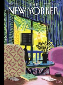 The Summer Fiction issue of the New Yorker features a cover by David Hockney (above), drawn/painted on his iPad, and another good sad story by George Saunders called “Home.” But the most remarkable thing in the magazine is Aleksandar Hemon’s Personal History essay, “The Aquarium,” reporting in Joan Didion-like detail about his nine-month-old daughter Isabel’s excruciating and successful battle with brain cancer. If this emotionally upsetting narrative is the A story, there is a fascinating B story having to do with Hemon’s three-year-old daughter’s response to the situation: