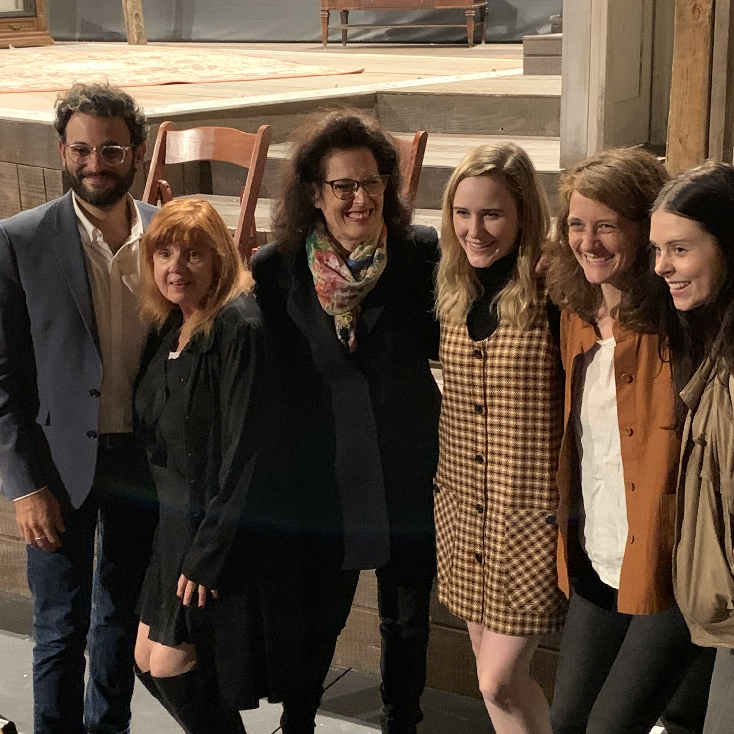 Saturday – beautiful day, up to 80 degrees. We took part in the Gays Against Guns action in response to the mass shootings in Lewiston, ME. I had a Google Hangout conversation with Alastair Curtis, a young theater artist in London who’s just discovered the work of Harry Kondoleon and wanted to talk to me in preparation for a reading he’s doing of Christmas on Mars. In the evening, Andy and I were back in the East Village to see Helen., the SuperGeographics production of Caitlin George’s play directed by Violeta Picayo. In the lobby we chatted a little with producer Anne Hamburger (whose En Garde Arts brought the show to La Mama), Linda Chapman, Chay Yew (looking very buff), and two young artists Anne is cultivating. I enjoyed the play, a dense, poetic, cheeky, queer/feminist riff on Greek mythology that reminded me of Young Jean Lee’s Lear the way it played fast and loose with familiar stories. In this version, Helen and her twin sister (!) Klaitemnestra and their sibling Timandra operate under the supervision of Elis, god of discord. This restless Helen isn’t waiting around to be abducted from her husband – she’s got wanderlust and knows how to use it. Picayo’s excellent production – light, fun, funny – made extensive use of quirky props (crowns, marbles, a barbecue) and almost continuous underscoring (by the great sound designer Darron L. West) with terrific performances, especially by charismatic Constance Strickland as Eris and Lanxing Fu as Helen (below center, with Grace Bernardo as Klaitemnestra and Melissa Coleman-Reed as Timandra).