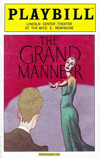 July 9 – I’m mildly interested in the story of Katharine (“Kit”) Cornell, one-time first lady of the American theatre, her gay director-husband Guthrie McClintic, and her lesbian lover Gertrude Macy, but A.R. (Pete) Gurney wouldn’t be my first choice of playwright to deliver that story with the panache, understanding, and dishy detail that would satisfy me. The Grand Manner, at Lincoln Center Theater, is based on the author’s brief meeting of these folks backstage at the Martin Beck Theatre during the run of Antony and Cleopatra, back when he was a teenaged autograph hound preceded by a handwritten note of introduction from his grandmother back in Buffalo. Out of this fleeting anecdote Gurney has fashioned a 90-minute drama whose central character is…Pete, the schoolboy. It is a typically tame Gurney drama. The actors show up and do well. Brenda Wehle gets to play Cornell’s tough protective butch girlfriend who says things to the kid like “I’m her great, good friend – do you know what that means?” Boyd Gaines as McClintic gets to stagger around saying “fuck” a lot (not the way we usually experience Gaines, who’s never been invited into David Mamet’s cherished circle). Kate Burton gets to, well, pretend to be grand while describing herself as “a dumpy middle-aged lesbian.” (Her best performance is actually being interviewed in the fascinating edition of the Lincoln Center Theater Review about her own family’s theatrical dynasty. Pick it up when you walk by the theater. ) Bobby Steggert plays Pete, and he’s charming. But oh, so tame.