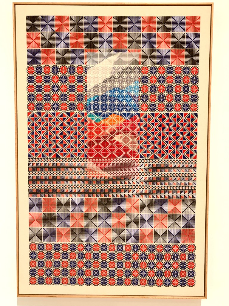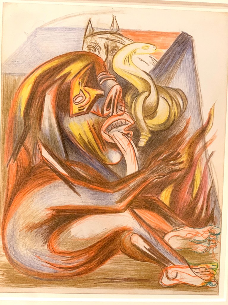 November 19 – I dutifully showed up at the Whitney Museum to check out Jasper Johns: Mind/Mirror (the other half of this retrospective is at the Philadelphia Museum of Art), which only confirmed the inability of Johns’ work to move me at all. His imagery (flags, numbers, maps, etc.) has always landed on me as extremely banal and ugly. The one piece that stood out for me in this show is Field Painting, probably because it looks a lot like the kind of multimedia “combine” that was the specialty of Robert Rauschenberg, his former partner and an artist whose lively, restless, generous creativity has always excited me.